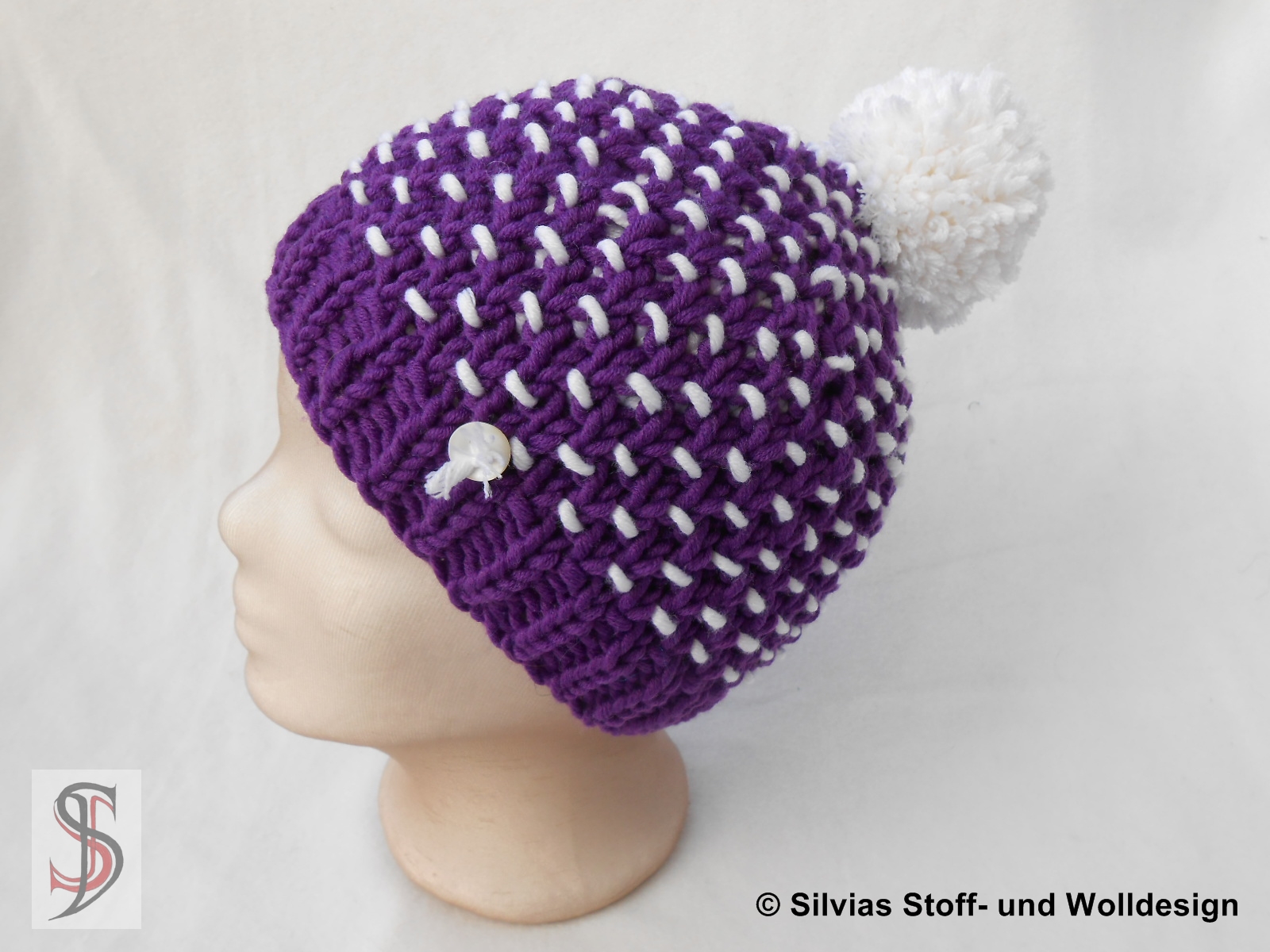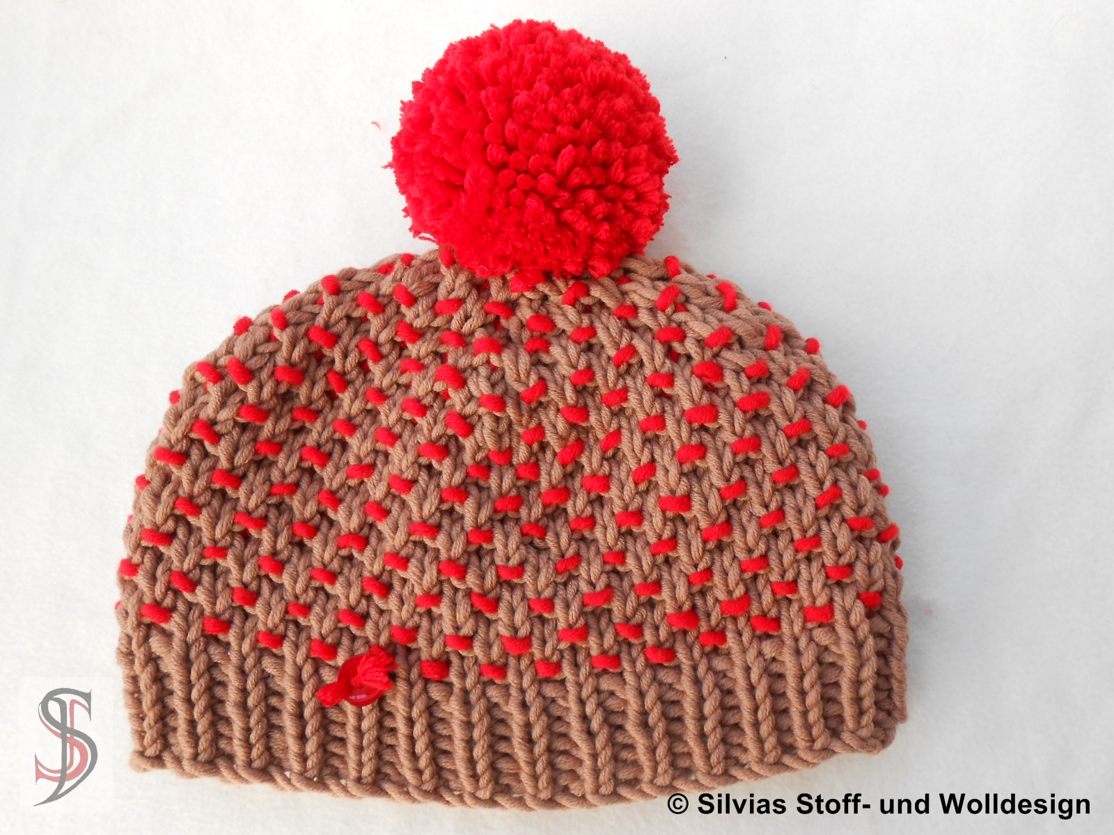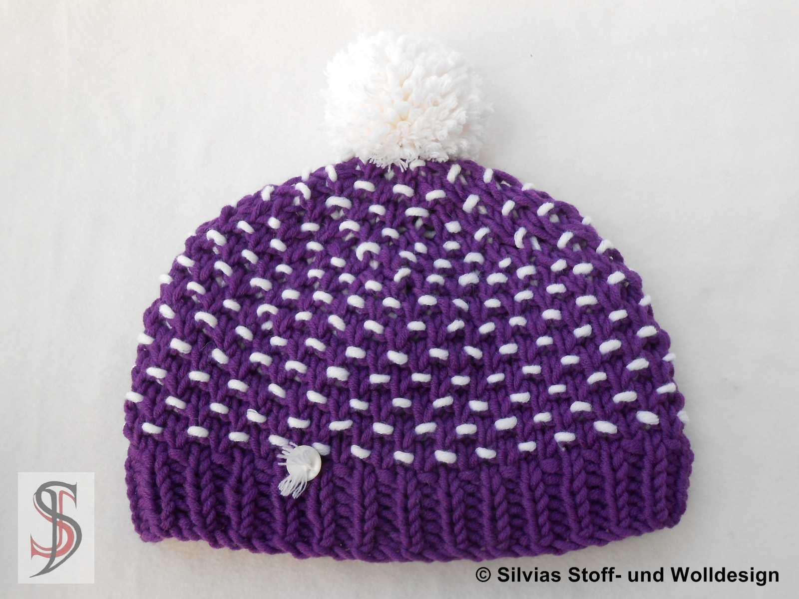 Die Anleitung für diese Mütze gibt es hier als pdf-Datei für die Größe 54-56 cm und 56-58 cm Kopfumfang: