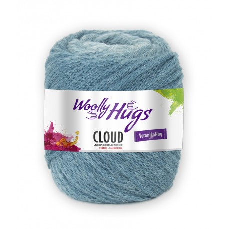 Die Cloud besteht zu 94 % aus Merinowolle und 6 & Polyamid. Es ist ein leichtes und überraschend weiches Garn. Ein Knäuel hat eine Lauflänge von 300 m/100 g und gestrickt wird mit Nadelstärke 5,5-6,5. Das Knäuel hat einen Farbverlauf über das ganze Knäul die Farben verlaufen von einem satten Türkis bis zu Natur.