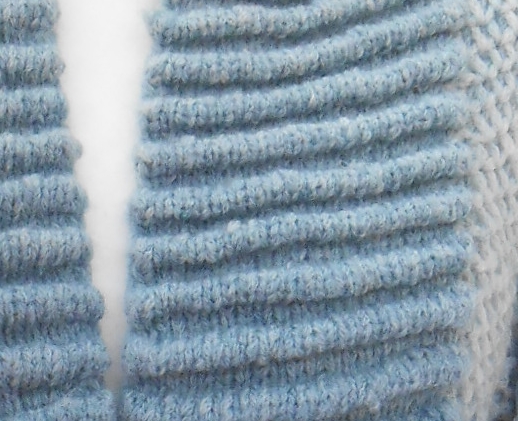 - Die vordere Blende und die Ärmelmanschetten sind mit Biesen gestrickt.