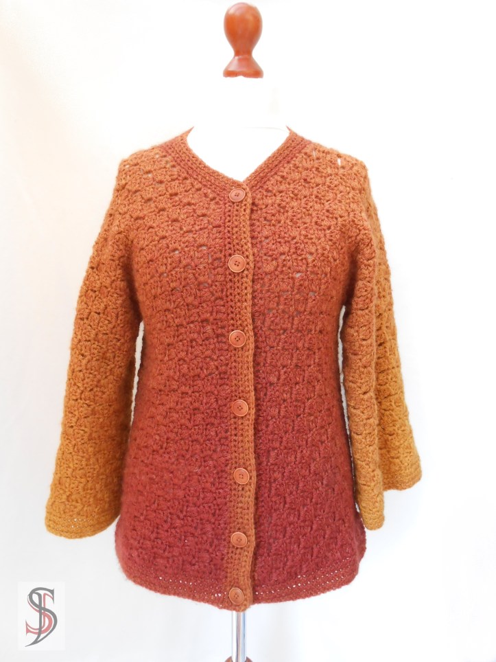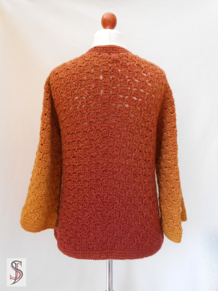 - Am Saum in der Mitte beginnt man mit Orange und bis zum Ärmel gibt es einen sanften Farbverlauf bis zum Gelb.