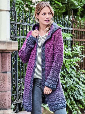 - Eine Häkeljacke mit dem wunderschönen Farbverlauf der Woolly Hugs CLOUD.