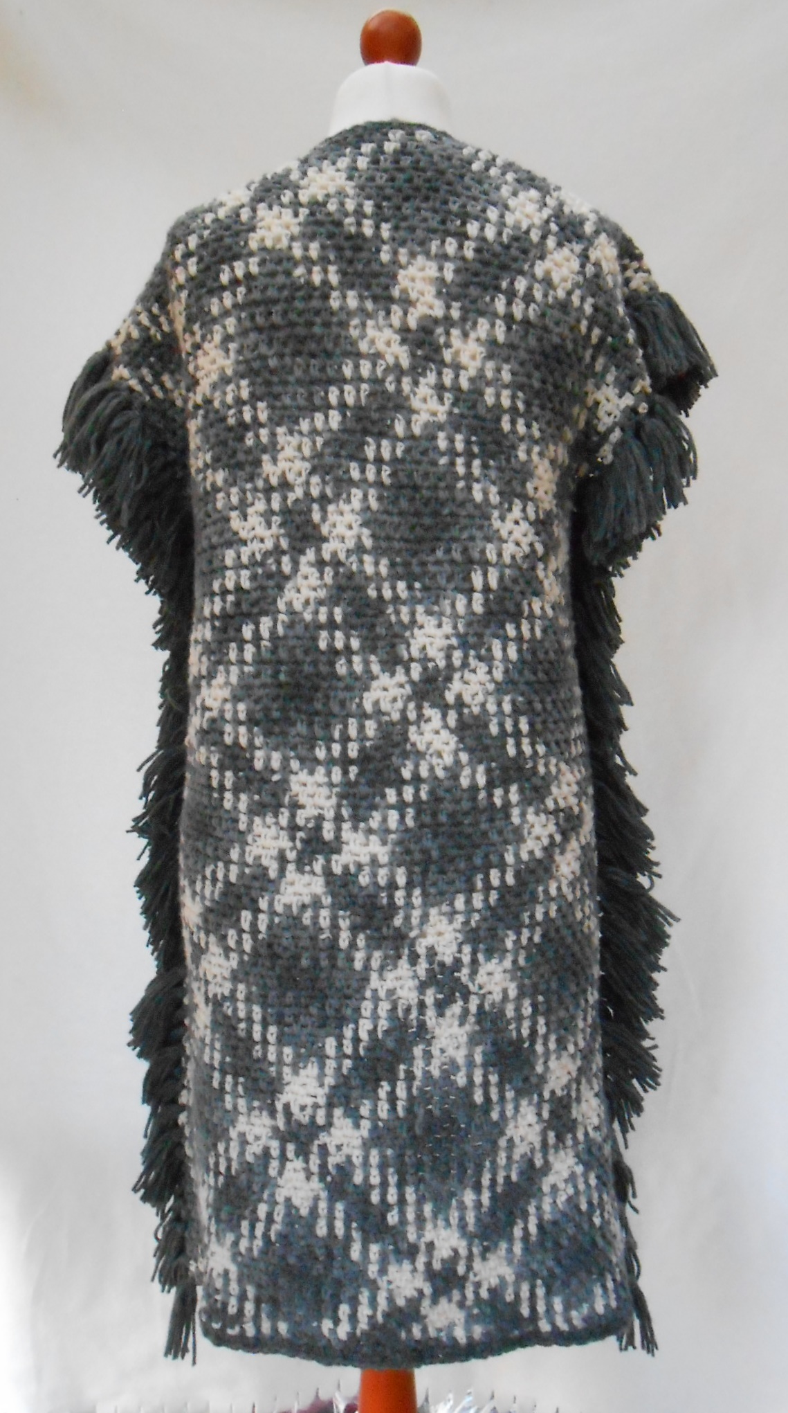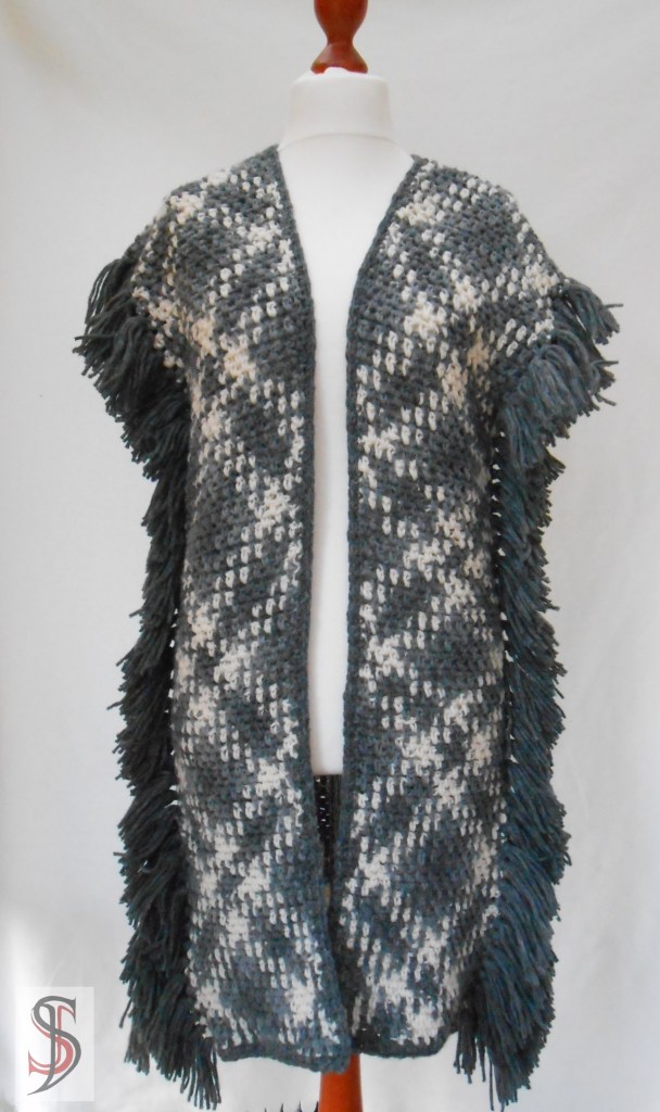 - Ein langes verschlussloses Cape bzw. eine Longweste.