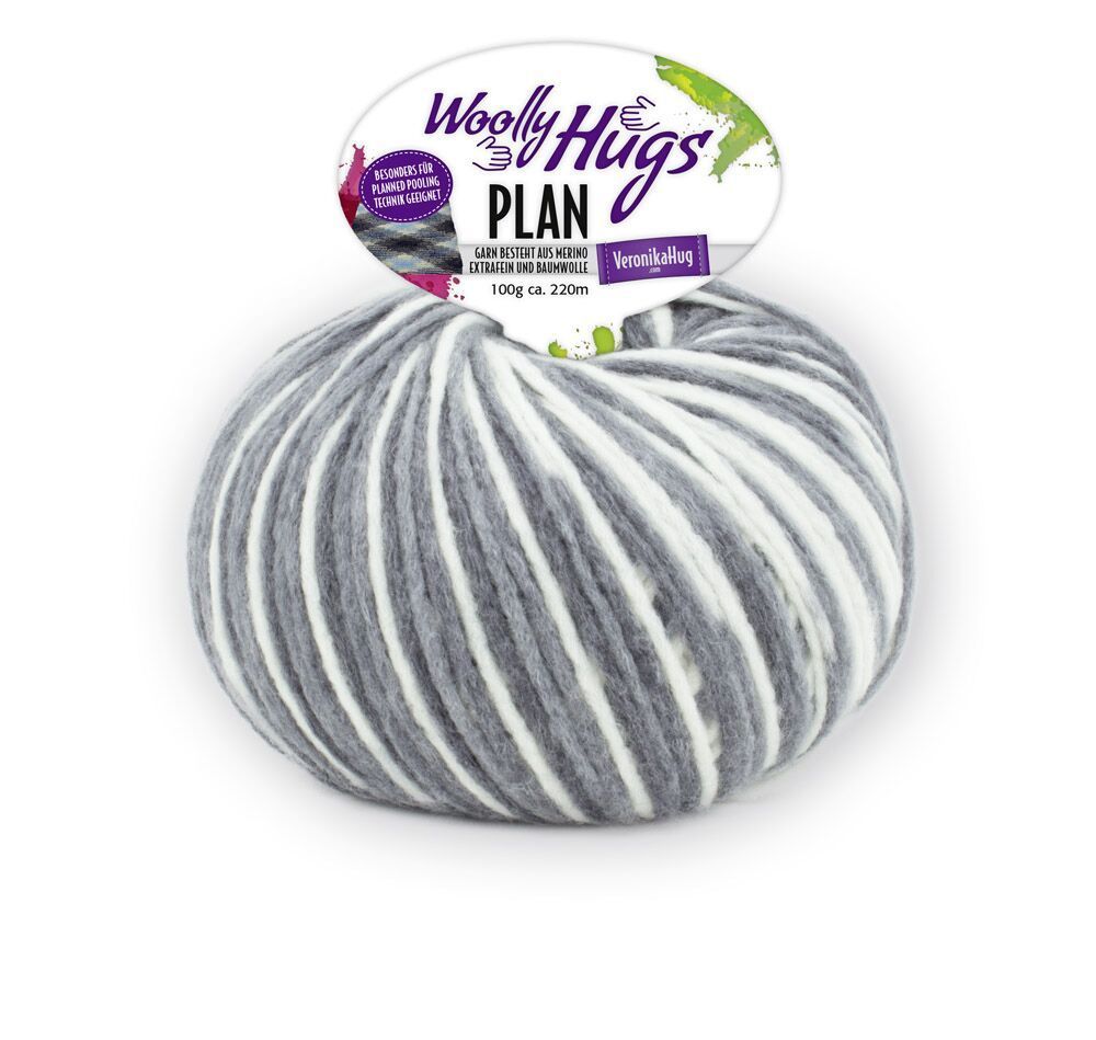 Das Material: Woolly Hugs PLAN in Hellgrau-Grau = Farbe 85