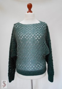 - Der Pulli wird quer gehäkelt.