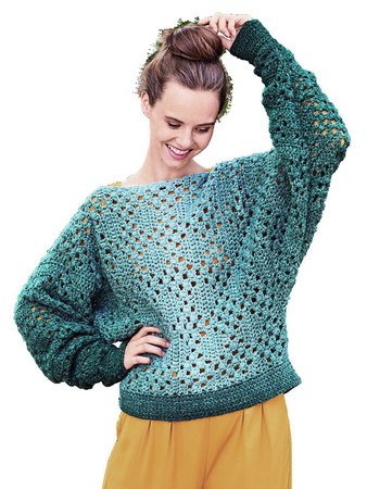 - Eine Häkelpulli mit dem wunderschönen Farbverlauf der Woolly Hugs CLOUD.