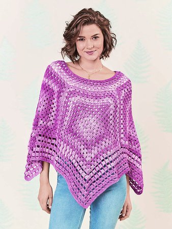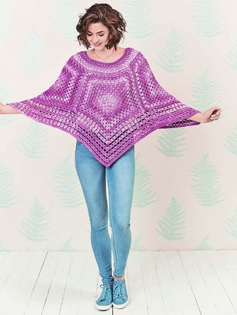 - Ein gehäkelter Poncho aus 4 Fünfecken.
