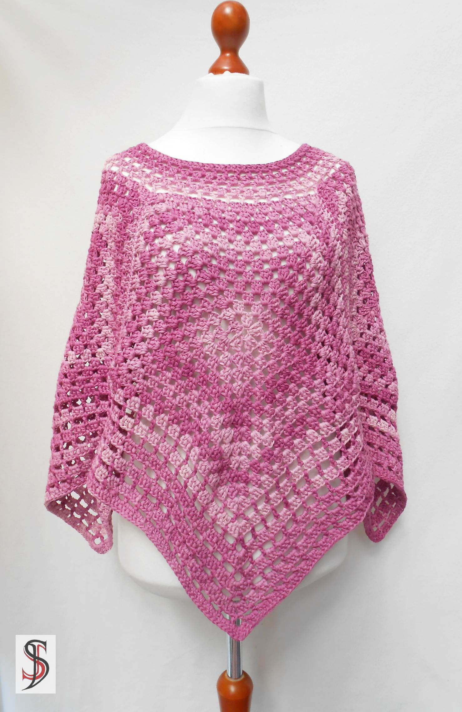 - Ein gehäkelter Poncho aus 4 Fünfecken.