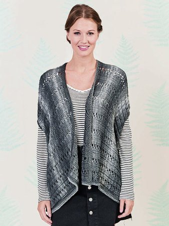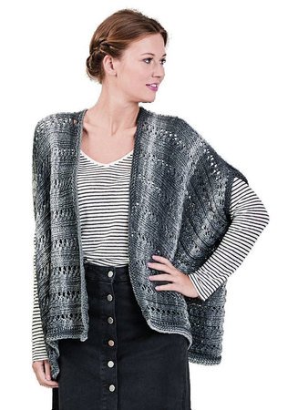Die BANDY WISH besteht zu 100% aus Baumwolle und ist ein leichtes Bändchengarn. Ein Knäuel hat eine Lauflänge von 210 m/100 g und gestrickt wird mit Nadelstärke 5-6. Der Farbverlauf reicht von einem kräftigen bis zu einem pestelligen Grau-Tönen. Das Garn ergibt einen zarten Streifeneffekt, das das Modell sehr lebendig und frisch erscheinen lässt.