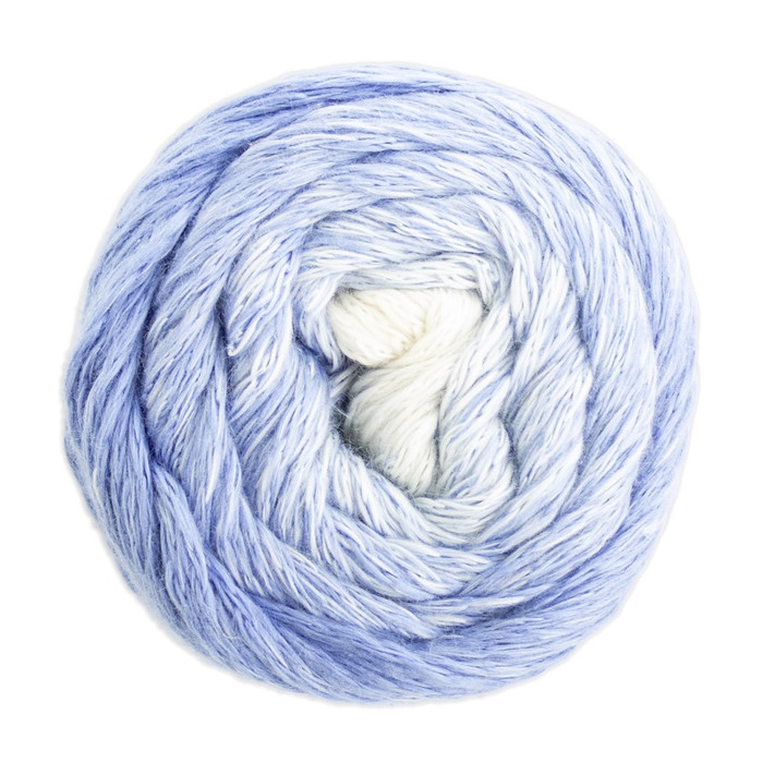 Die Sky besteht zu 100% aus Baumwolle und ist ein leichtes und überraschend weiches Garn. Ein Knäuel hat eine Lauflänge von 250 m/100 g und gestrickt wird mit Nadelstärke 5-6. Das Knäuel hat einen Farbverlauf über das ganze Knäuel die Farben verlaufen von einem hellen Blau bis zu Natur.