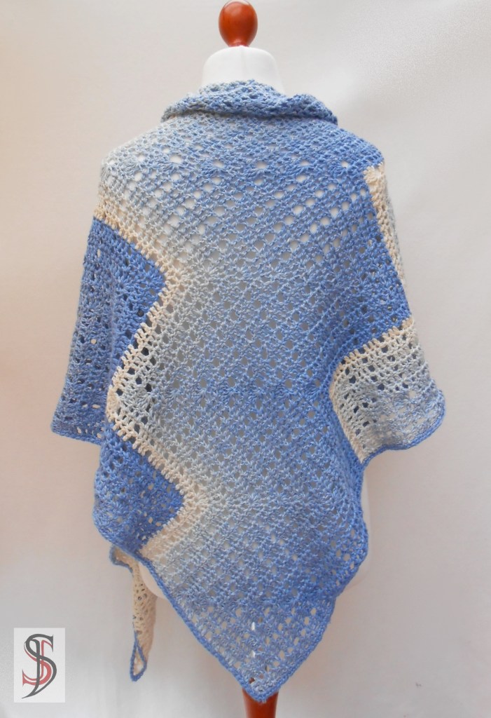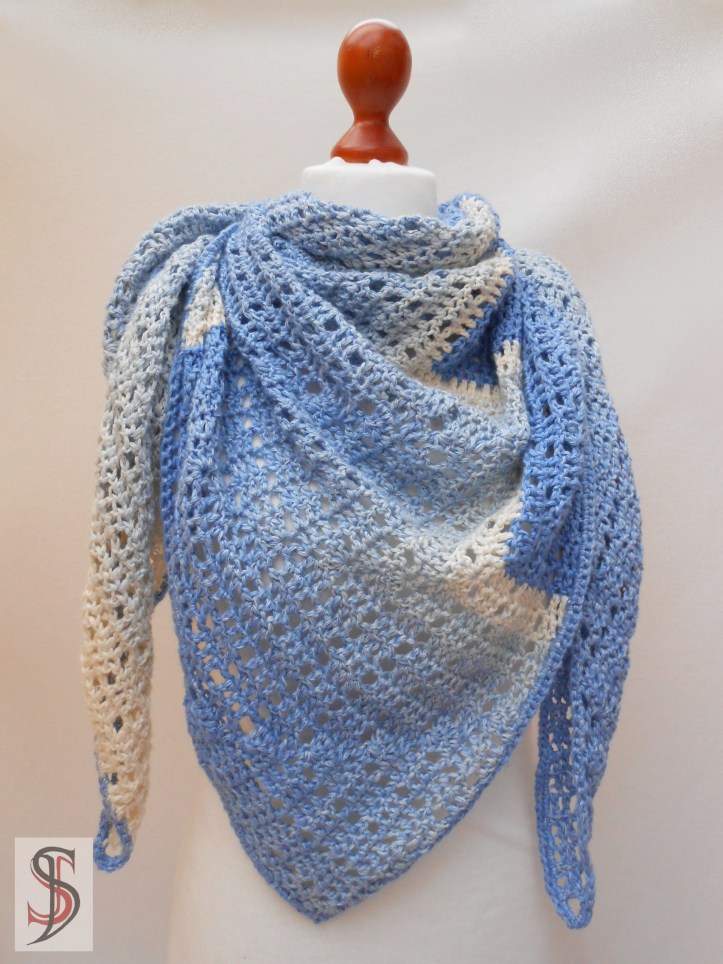 Das Tuch hat eine Größe von 190 x 95 cm und man benötigt man 300 g.