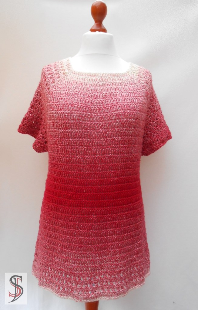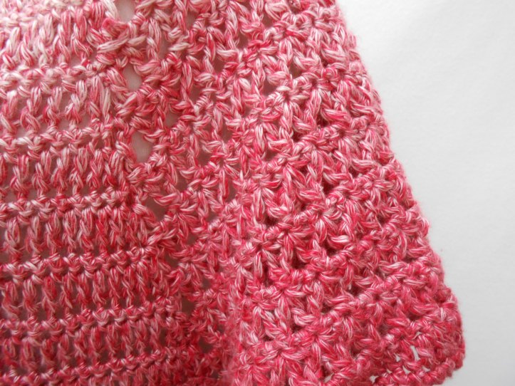 - Am Ärmel und am Saum wird in das Grundmuster ein Lochmuster eingearbeitet.